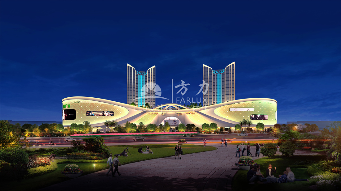 1、塔楼、裙楼全覆盖的LED泛光照明;