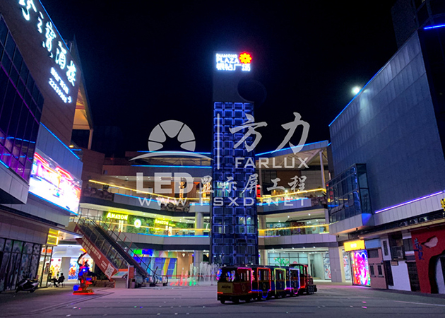 2、连廊采用小投光灯将整个连廊顶部结构和柱子投亮,并在原有结构基础上增加白鸽发光小品,增加商业气氛;栏杆处采用