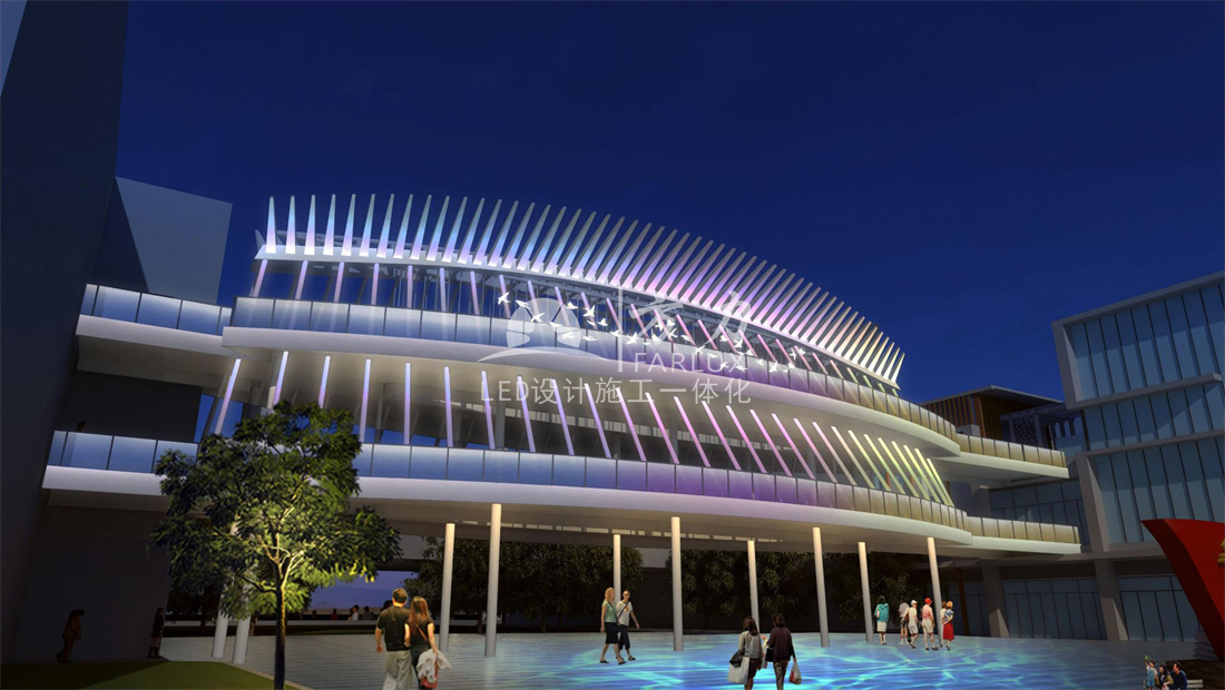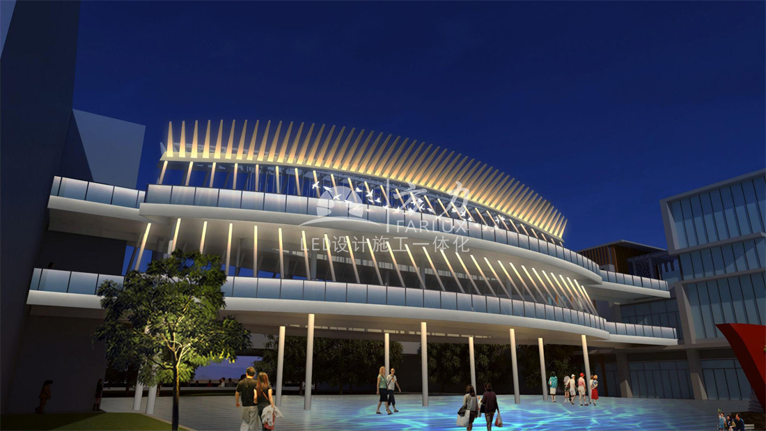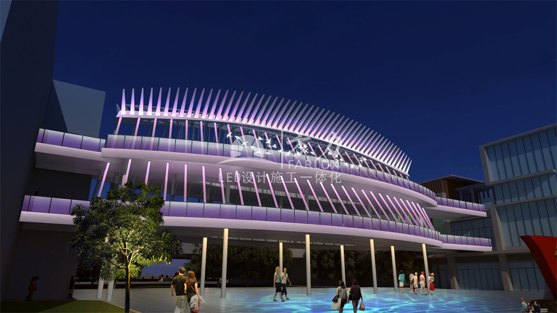 1、整体灯光方案以动静结合为主,色温为3000K,玻璃幕墙处采用线性灯,可进行色彩变幻,也可单色。
